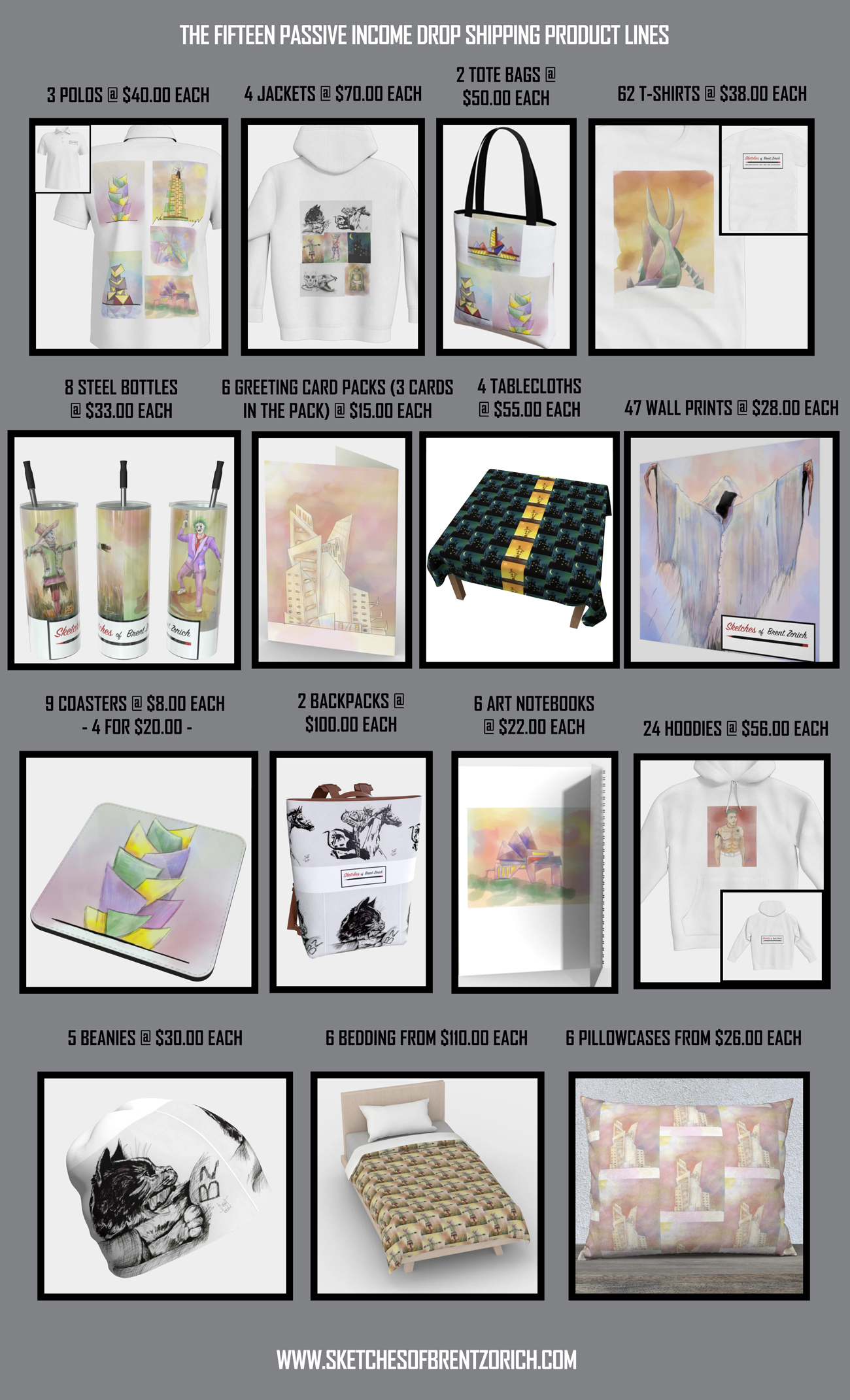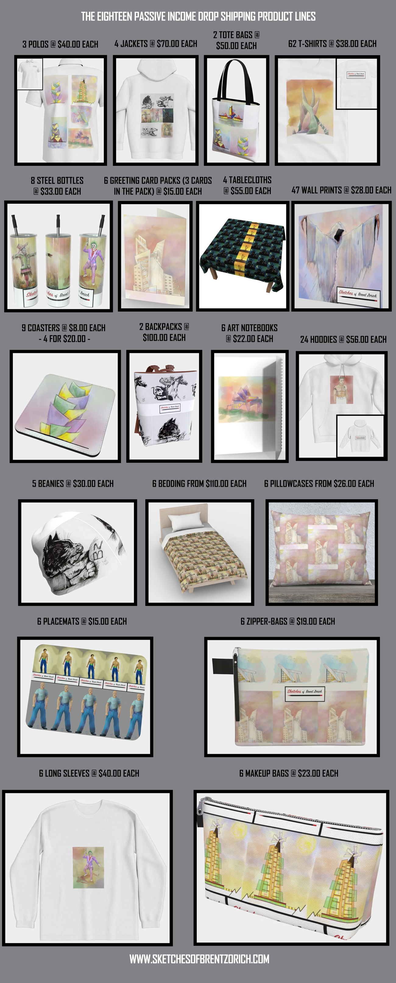 2ND VENTURE :::: SKETCHES OF BRENT ZORICH (MERCHANDISE LINE) :::: PASSIVE INCOME STREAM